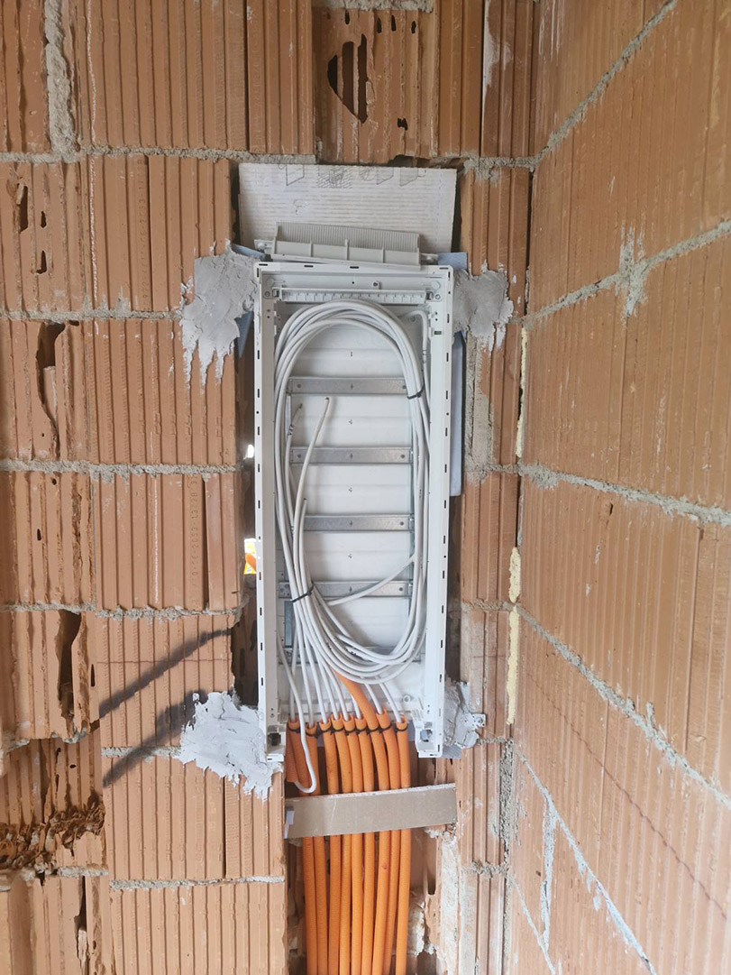 Druga faza zajema montažo stikal, vtičnic, vezavo stikalnih blokov in seveda tudi razsvetljave. Stikala so lahko nado metne ali podometne izvedbe, prav tako stikalni bloki. V praksi se imenuje druga faza tudi finomontaža, ki se izvede na koncu pleskarskih del.