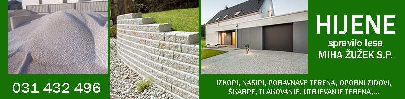 Podjetje HIJENE, spravilo lesa, MIHA ŽUŽEK S.P. že več let uspešno deluje v naši regiji na področju zemeljskih del, urejanja okolice in tudi gozdarstva. Za vas opravljamo tako manjše nizke gradnje (manjši izkopi, izravnave zemlje,…) kot tudi večja zemeljska dela, sanacije, gradnje in večje instalacije. Ker se zavedamo, da je konkurenca na tržišču velika in da je zadovoljstvo strank najpomembnejše, svoje storitve opravljamo zanesljivo, strokovno in natančno, prav tako pa sledimo novostim, smo opremljeni s kvalitetno mehanizacijo in skušamo biti čim bolj fleksibilni glede na potrebe naših strank.